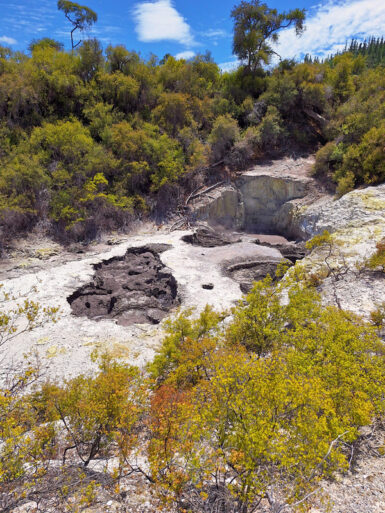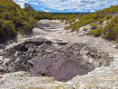 Brodelnder, grauschwarzer Schlamm, der spektakuläre Blasen wirft. Fun Fact: Die unheimlichen Geräusche dienten als Soundkulisse für Mordor in „Der Herr der Ringe“.