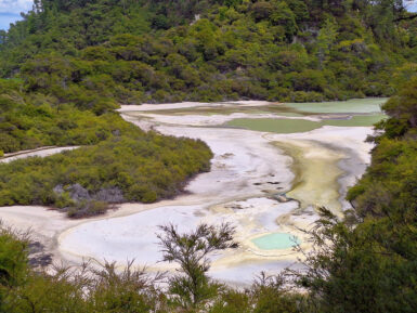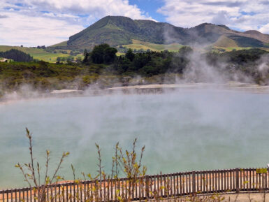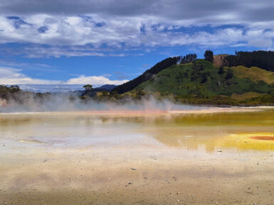 Neuseeland: Rundweg durch dampfende Schwefelfelder, über blubbernde Erde und vorbei an surreal leuchtenden Pools.