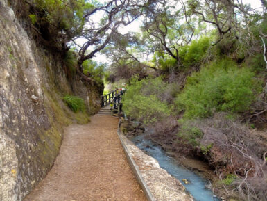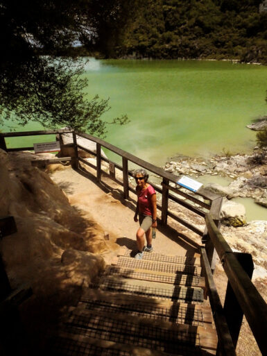 Im Wai-O-Tapu Thermal Wonderland gibt es drei angelegte und markierte Wege (nur einer ist ohne Stufen). Wir haben alle drei kombiniert und konnten so alle Sehenswürdigkeiten auf gut 3,5 Kilometern durch den Park erwandern. Laut Plan sind im Park 25 geothermische und damit verbundene Sehenswürdigkeiten zu besichtigen. Wir haben uns dafür viel Zeit genommen und waren so gut 3 Stunden im Park unterwegs.