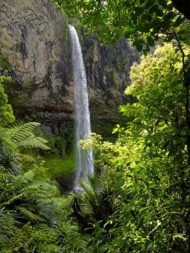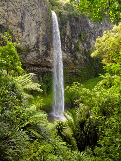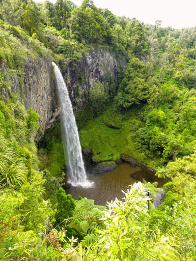 Wie so oft in Neuseeland ist dieses Naturschauspiel ein Überbleibsel uralter vulkanischer Aktivität. Vor etwa 2,5 Millionen Jahren formte ein Ausbruch des Okete-Vulkanschlots die Landschaft in der Nähe von Raglan. Die Folgen sind noch heute zu bewundern: die Bridal Veil Falls (Māori: Wairēinga, Brautschleierfälle). Über die Abbruchkante einer Steilwand aus Säulenbasalt stürzt der Pakoka River 55 Meter tief in einen kleinen See.