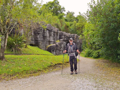 Gut gelaunt starten wir unsere Wanderung vom Campingplatz aus. Der Waitomo Walkway, ein schmaler Pfad, schlängelt sich am Waitomo Stream entlang, durch Wälder, vorbei an Klippen und Kalksteinbögen.