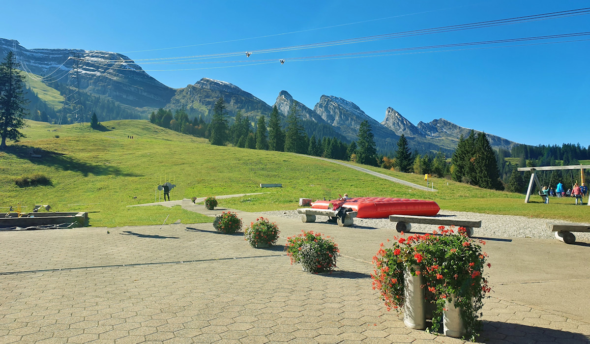 Die Churfirsten bilden eine markante Bergkette aus sieben Gipfeln im Kanton St. Gallen und gehören zu den Appenzeller Alpen. Im Norden laufen sie in relativ flachen Bergrücken bis zum Toggenburg aus, während sie südwärts spektakulär und fast senkrecht zum Walensee abfallen, von über 2.000 auf nur 420 Meter Höhe. Der Chäserrugg (2.261 m) markiert den östlichsten Punkt der Kette und gilt wegen seiner geringen Schartenhöhe von lediglich 14 Metern gegenüber dem benachbarten Hinterrugg (2.306 m) eigentlich als dessen Nebengipfel. Vom Talort Unterwasser (910 m) führt ein abwechslungsreicher Wanderweg auf den Chäserrugg; wer es bequemer mag, erreicht den aussichtsreichen Gipfel auch mit der Iltios-Standseilbahn und der Luftseilbahn Iltios–Chäserrugg.