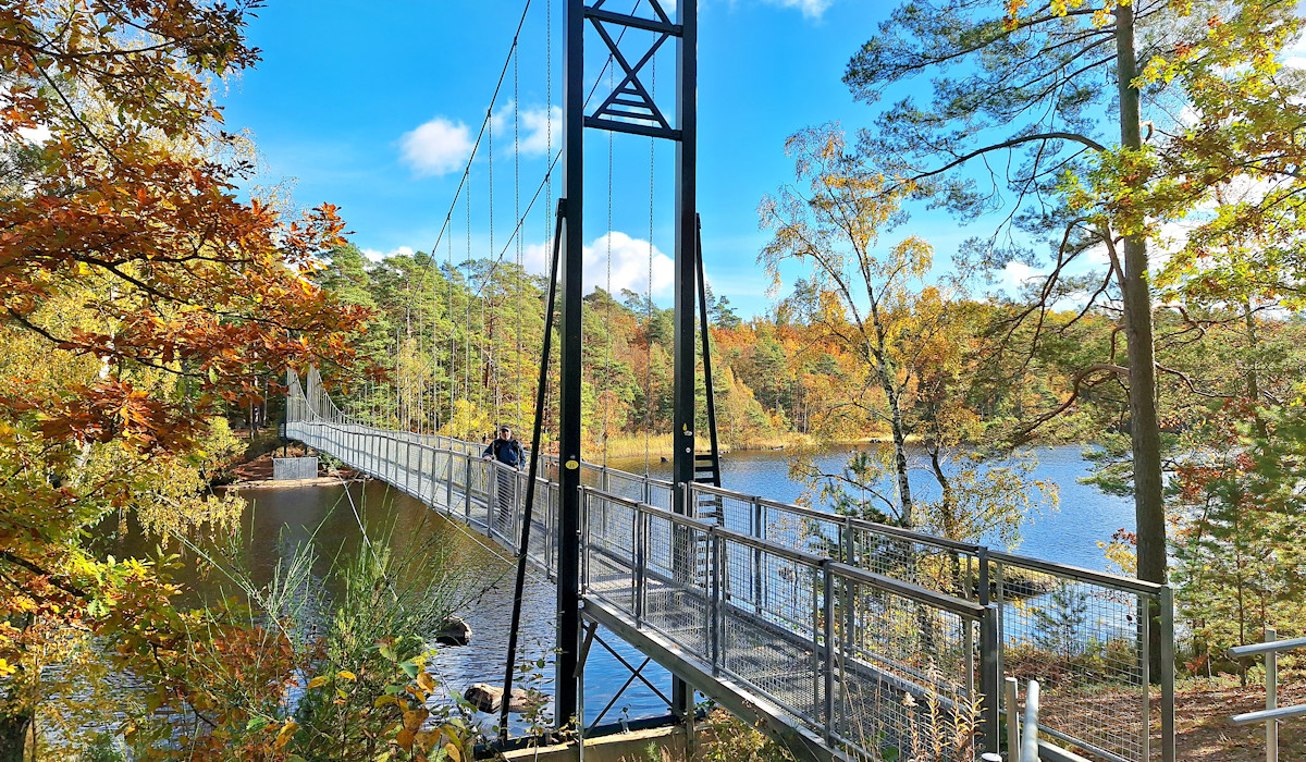 Blekinge: Wunderschöne Wanderrunde über die Hängebrücke Frickabron und um den See Halen.