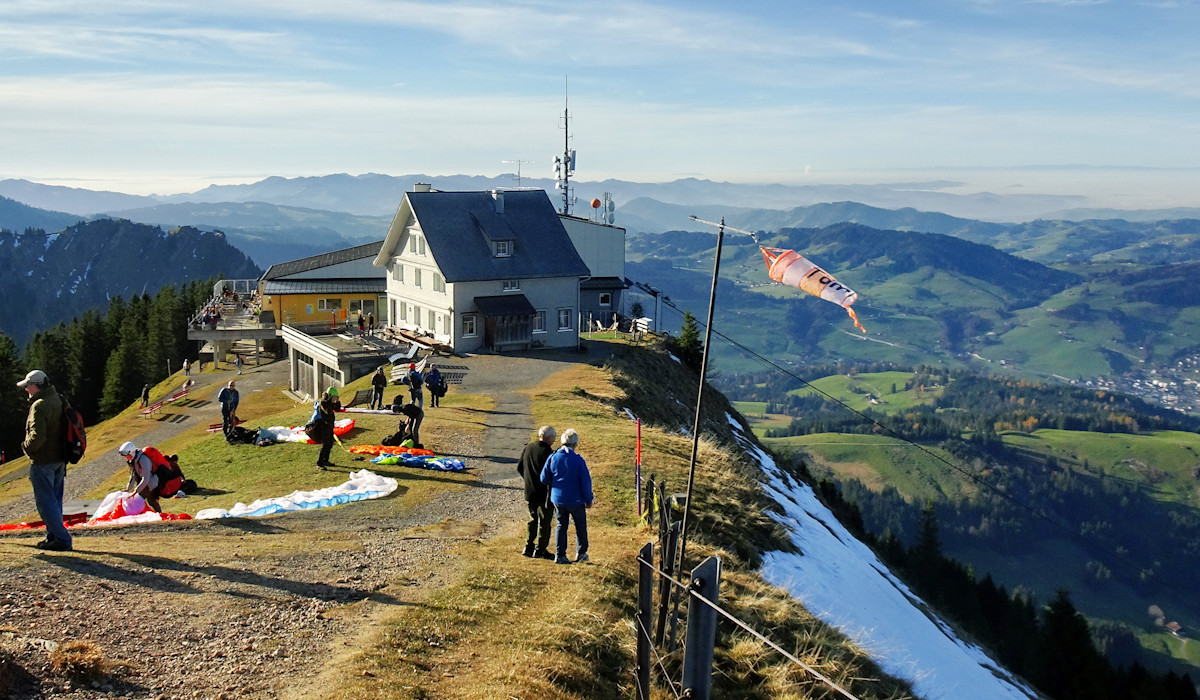 Über dem Bodensee liegt eine schwere Nebeldecke. Sie hält sich hartnäckig und trübt die Stimmung. Am besten vertreibt man diese Herbstdepression mit einer Wanderung in die Höhe. Die nahen Appenzeller Alpen in der Schweiz versprechen bestes Herbstwetter. Also packen wir unsere Sachen und fahren hinauf zum Schwägalppass unterhalb des Säntis (2.502 m). Von hier startet der schöne Wanderweg zum Kronberg.