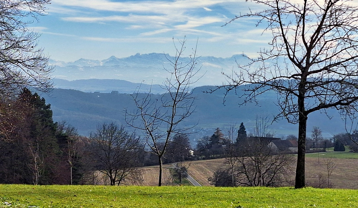 In den letzten Tagen hat es in den Alpen kräftig geschneit, auf dem Feldberg sollen inzwischen rund 70 Zentimeter liegen. Am Bodensee zeigt sich das Wetter hingegen meist nebelgrau, nur manchmal reißt der Himmel am Nachmittag auf. Genau dann ist die perfekte Gelegenheit für einen Ausflug in die Nähe. Ich entscheide mich, auf die Höri zu fahren, nach Bankholzen, für einen Rundweg auf den Schienerberg.