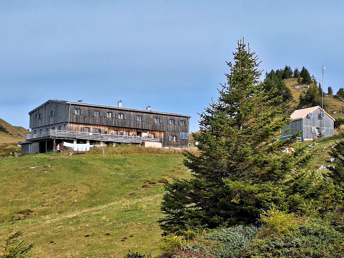Rund um das Freschenhaus (1.846 m) und den Hohen Freschen (2.005 m) im Bregenzerwald liegt das größte Naturschutzgebiet Vorarlbergs. Die Hütte thront aussichtsreich über dem Rheintal und ist ein beliebtes Ziel für Wanderer, Mountainbiker und im Winter auch für Schneeschuhwanderer. Unweit der Hütte befinden sich die die gepflegte kleine Freschenkapelle. die über 700 m lange Freschenhöhle sowie ein Steingarten, der neben Alpenpflanzen auch Flora aus anderen hochalpinen Regionen der Welt zeigt. Mehrere Wege führen zum Freschenhaus, ich entscheide mich heute für den steilen Aufstieg von Bad Laterns.