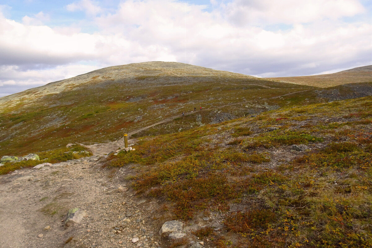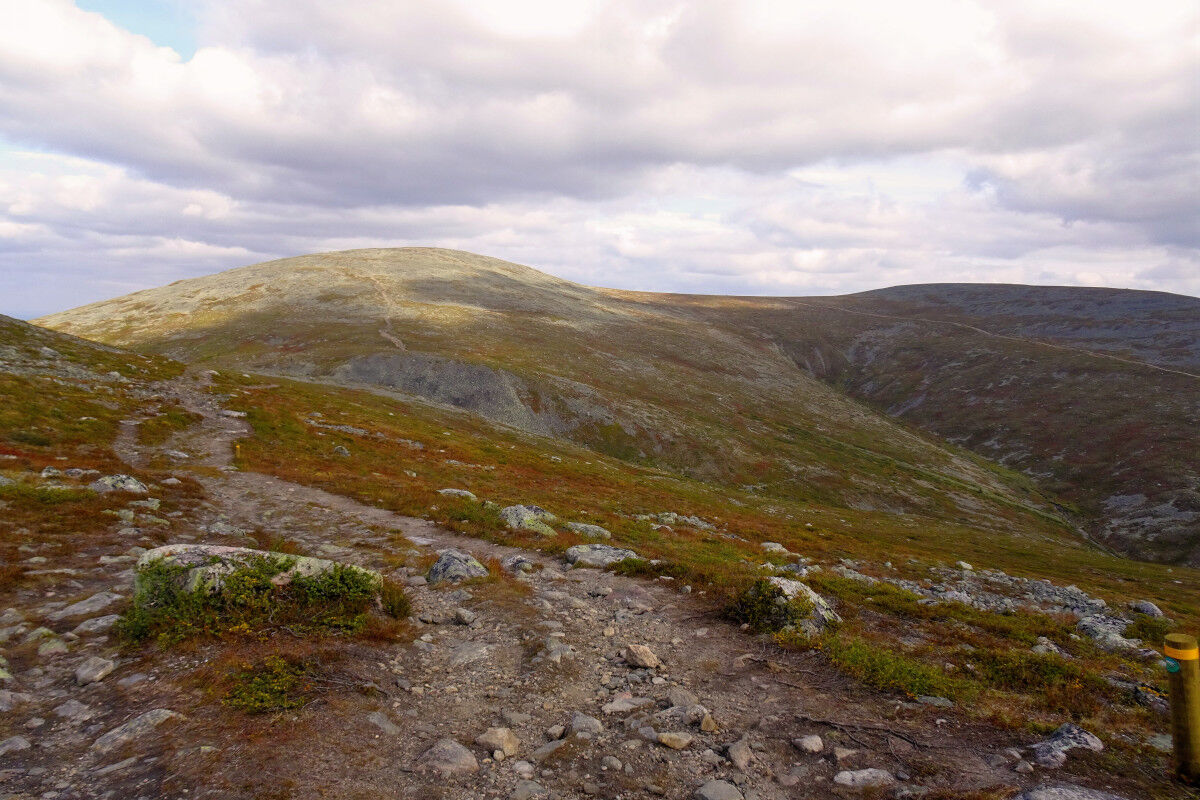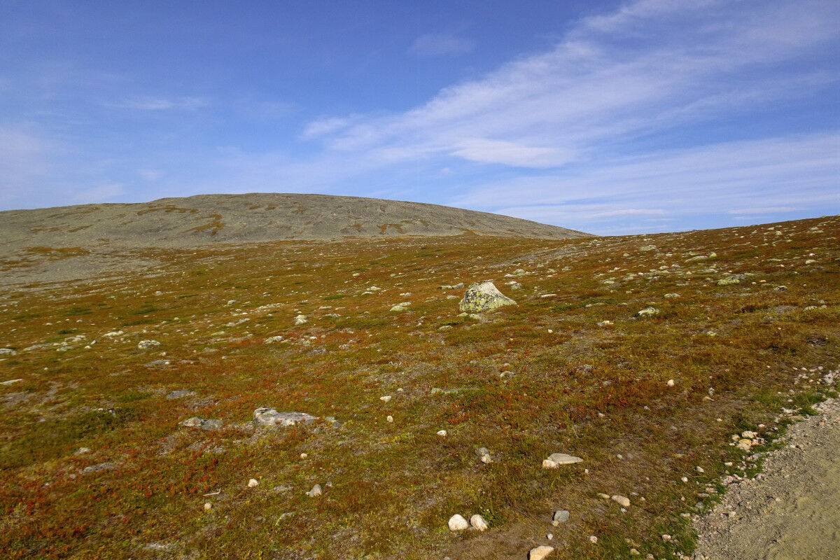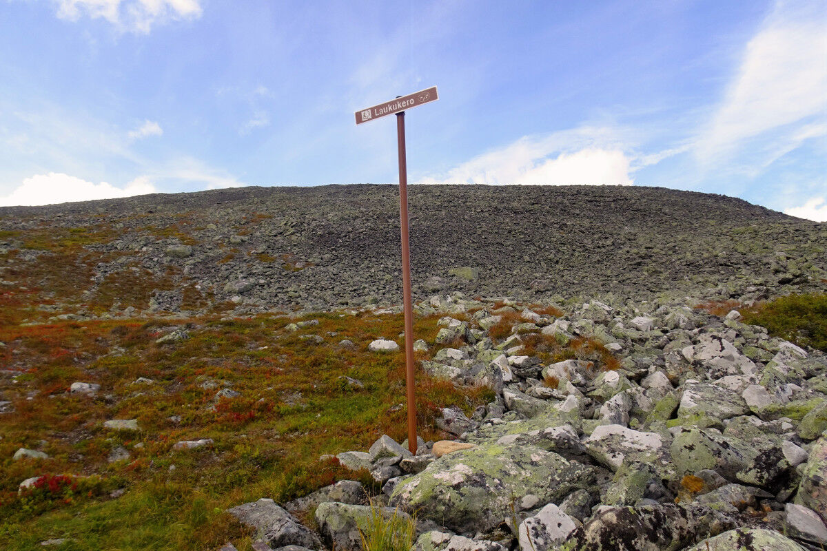 Nach dem Gipfel wandern wir abwärts in die Talkerbe Liisansatula hinein, um danach den sanften Anstieg zur Kuppe des Laukukero zu absolvieren. Allerdings führt der Weg nicht bis auf den Gipfel, sondern wir überqueren diesen Tunturi an seiner Südseite knapp unterhalb des Gipfels.