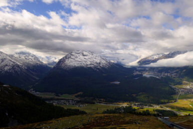 Als wir bei der Bergstation Muottas Muragl aus der Standseilbahn aussteigen, verschlägt es uns schier den Atem ob der traumhaften Aussicht auf die Berge und Seen von St.Moritz bis Maloja.