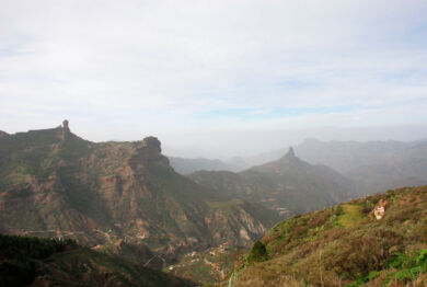 Blick in die Caldera Tejeda mit Roque Nublo (li) – ganz rechts Pico de las Nieves.