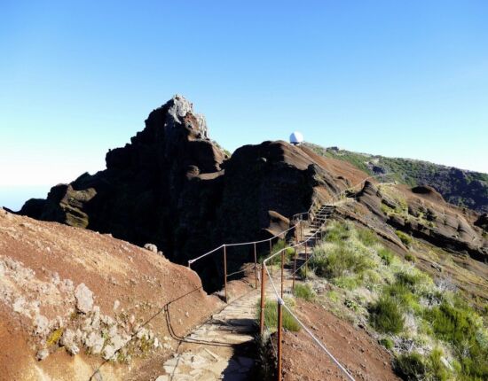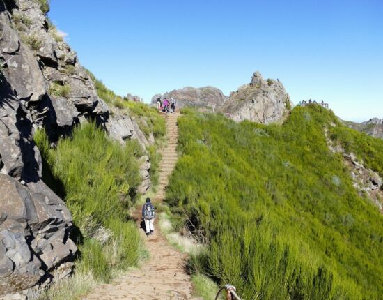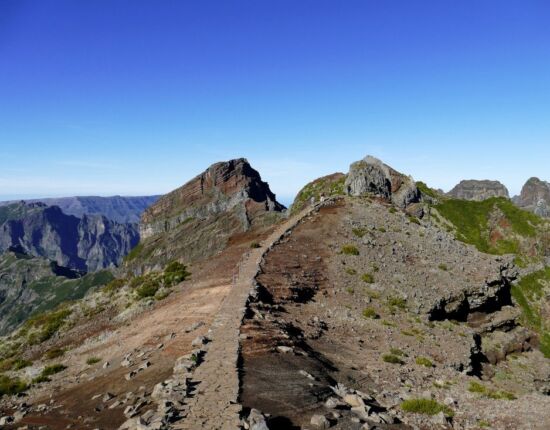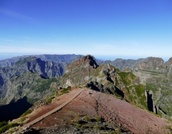 Der Pico do Arieiro, mit 1.816 Metern Madeiras dritthöchster Gipfel, ist durch eine Straße leicht zu erreichen und daher eines der meistbesuchten Ausflugsziele. Nicht einmal drei Kilometer Luftlinie trennen ihn vom höchsten Gipfel der Insel, dem 1.862 Meter hohen Pico Ruivo. Ein verwegen angelegter Wanderweg verbindet die beiden Berge miteinander und umrundet dabei den Pico das Torres, mit 1.853 Metern die Nummer zwei. Die von extremen Steilhängen und bizarren Felsformationen geprägte Gegend ist die schönste Gebirgsregion der Insel, nirgendwo sonst wird der vulkanische Ursprung so deutlich wie hier. Die Szenerie überfüttert einen geradezu mit optischen Eindrücken, vom ersten bis zum letzten Meter bieten sich immer wieder gigantische Aussichten auf diese atemberaubende Bergwelt!
