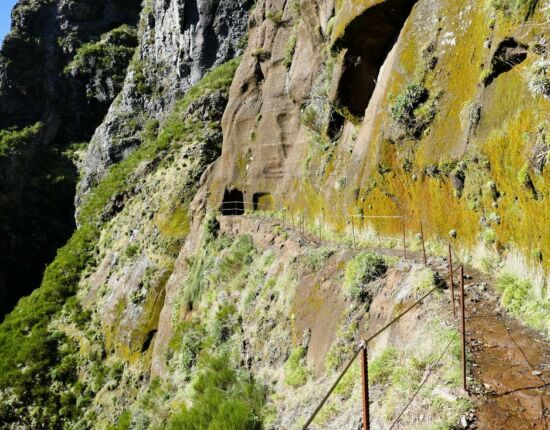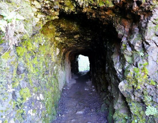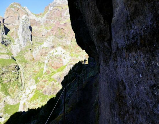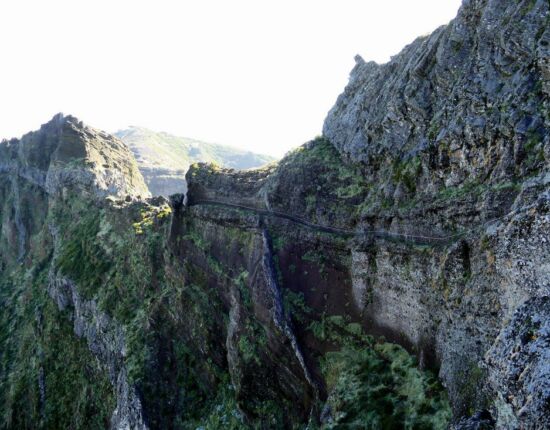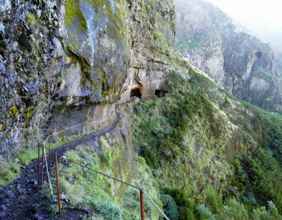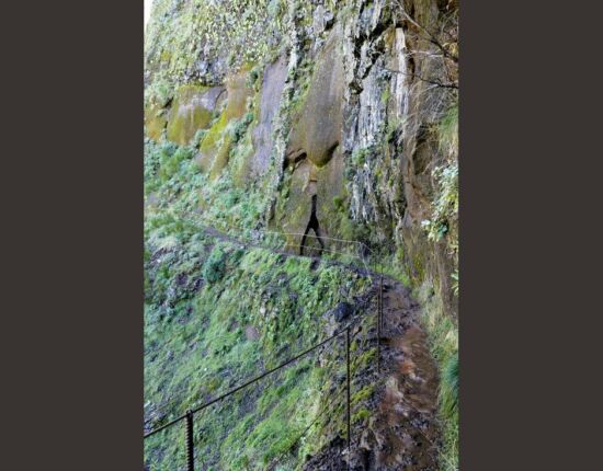 Hier gäbe es zwei Alternativen: den aussichtsreichen und etwas längeren Ostweg, der sich außen um den Hang des Pico das Torres herumschlängelt, und den etwas kürzeren Westweg, der stellenweise auf spektakuläre Art in die Felswand gehauen ist und einige Tunnel durchläuft. Die Ostroute ist seit 2017 wegen Steinschlag und Erdrutsch gesperrt, war es auch Anfang 2019 und wird es wohl noch länger sein. Infos darüber finden sich z.B. auf http://www.visitmadeira.pt/de-de/nutzliche-info/wanderungen/warnhinweis-fur-wanderer-und-liste-den-wanderwege .