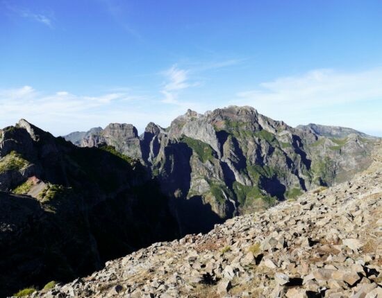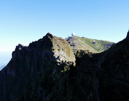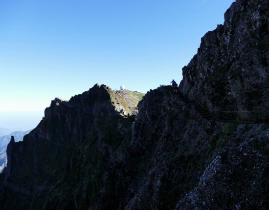 Der Pico do Arieiro, mit 1.816 Metern Madeiras dritthöchster Gipfel, ist durch eine Straße leicht zu erreichen und daher eines der meistbesuchten Ausflugsziele. Nicht einmal drei Kilometer Luftlinie trennen ihn vom höchsten Gipfel der Insel, dem 1.862 Meter hohen Pico Ruivo. Ein verwegen angelegter Wanderweg verbindet die beiden Berge miteinander und umrundet dabei den Pico das Torres, mit 1.853 Metern die Nummer zwei. Die von extremen Steilhängen und bizarren Felsformationen geprägte Gegend ist die schönste Gebirgsregion der Insel, nirgendwo sonst wird der vulkanische Ursprung so deutlich wie hier. Die Szenerie überfüttert einen geradezu mit optischen Eindrücken, vom ersten bis zum letzten Meter bieten sich immer wieder gigantische Aussichten auf diese atemberaubende Bergwelt!