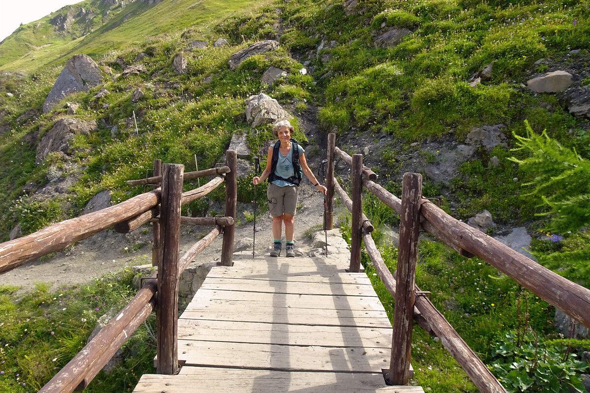 Das Rifugio Walter Bonatti ist eine Schutzhütte in der italienischen Provinz Aostatal in den Walliser Alpen. Sie liegt auf einer Höhe von 2.025 m nordöstlich von Courmayeur im Seitental Val Ferret. Die Hütte wurde am 2. August 1998 eingeweiht und dem bekannten Bergsteiger Walter Bonatti gewidmet. Der Aufstieg vom Val Ferret durch Lärchenwälder und über Alpweiden zur Hütte dauert etwas mehr als eine Stunde. Das Refugio liegt am Höhenweg Tour du Mont-Blanc (TMB). Auf diesem Weg sind wir dann wieder ins Tal abgestiegen.