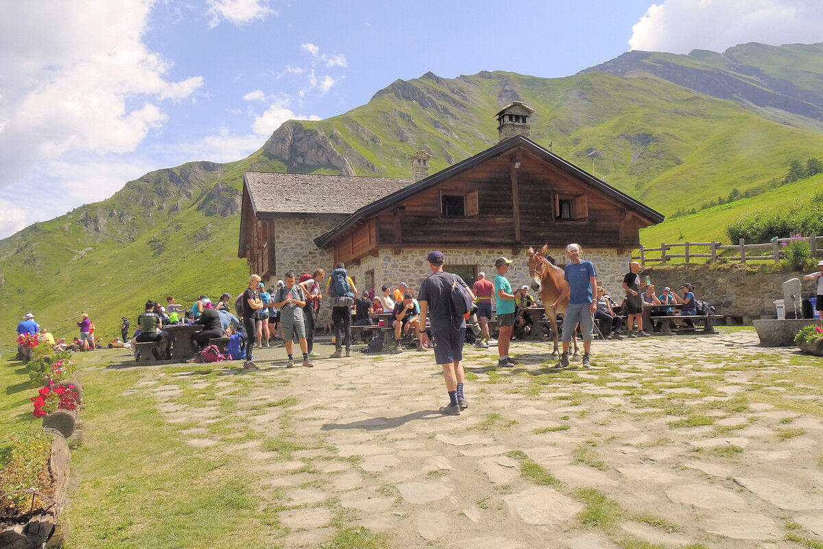 An der Hütte herrscht reger Betrieb, sie ist eine beliebte Zwischen- und Endstation für die TMB-Wanderer. Wir sitzen lange auf der Wiese vor der Hütte und genießen die herrliche Aussicht.