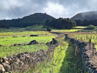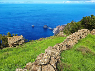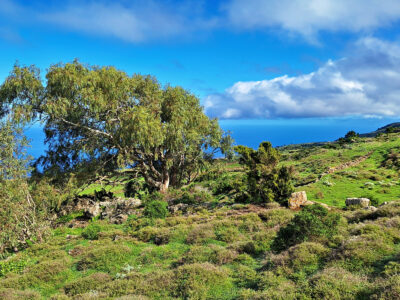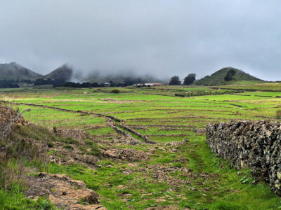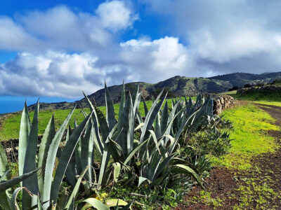 Das zentrale Hochland von El Hierro, die Hochebene Meseta de Nisdafe, besticht durch sanfte Hügel und weite, offene Weidelandschaften, durchzogen von zahllosen alten Steinmauern. Dieses für die Kanaren einzigartige Landschaftsbild erinnert eher an die Weiten Irlands als an eine Atlantikinsel. Im Winter leuchten die Wiesen in sattem Grün, im Frühling verwandeln sie sich in ein buntes Blütenmeer. Die Wanderung startet im kleinen Ort San Andrés und führt zunächst über die grünen Weiden zum Aussichtspunkt Mirador de Jinama. Anschließend verläuft der faszinierende Höhenweg direkt entlang der Abbruchkante des Golftals bis in die Nähe des Mirador de La Peña. Am Ende geht es wieder über die Hochebene zurück nach San Andrés.
