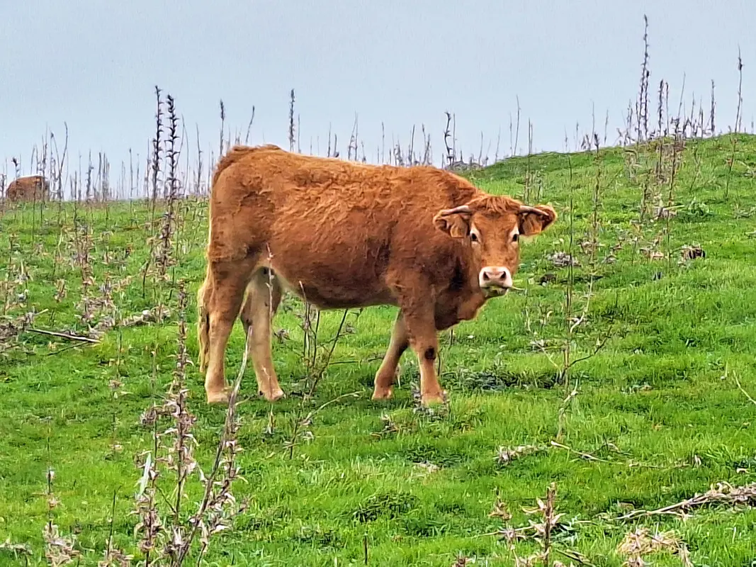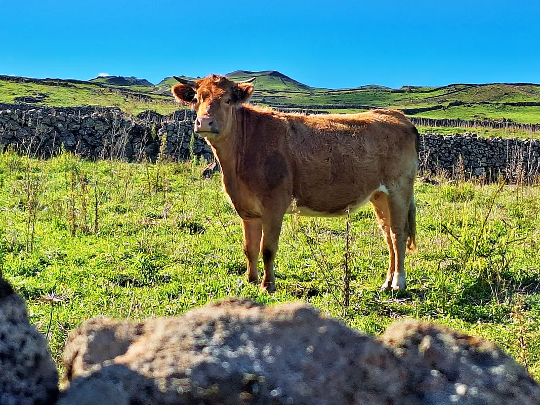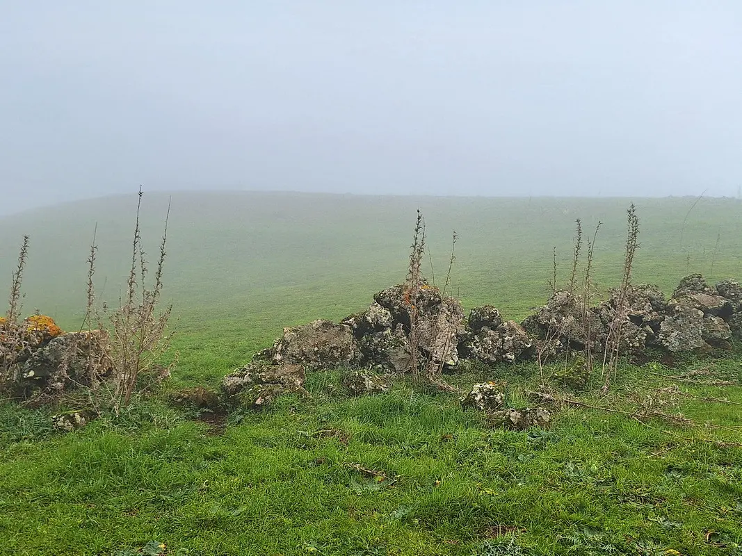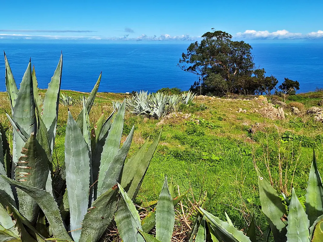 Die Meseta de Nisdafe ist ein Hochplateau im Nordosten von El Hierro, zwischen 900 und 1.200 Metern Höhe, nahe dem Dorf San Andrés. Nach den Regenfällen im Winter zeigen sich die Wiesen und Weiden in sattem Grün, durchzogen von bunten Blüten. Typische Trockenschichtmauern aus Vulkangestein teilen die Fläche in Parzellen, auf denen Kühe, Schafe und Pferde grasen.