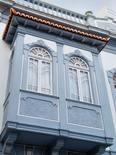 Bunte kanarische Holzbalkone gehören zu den Wahrzeichen von Santa Cruz. Die Balkone sind meist ornamental verziert und stellen Beispiele der maurischen Baukunst Andalusiens dar. Geschnitzt wurden sie von portugiesischen Einwanderer.