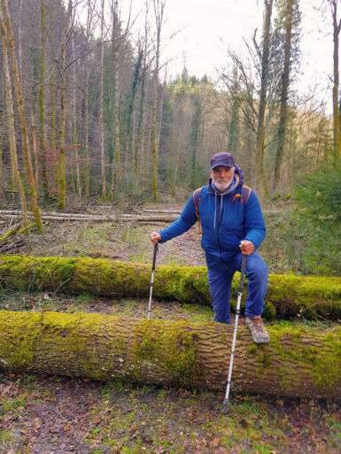 Auf dem Schiener Berg wechseln wir mehrmals die grüne Grenze zwischen der Schweiz und Deutschland. Bereits 1971 wurde sie durch einen Staatsvertrag für Wanderer geöffnet. Davor regelte der Grenzberichtigungsvertrag von 1830 zwischen der Schweiz und Baden den genauen Grenzverlauf zwischen dem Kanton Schaffhausen und dem Großherzogtum Baden. Auffallend viele Grenzsteine tragen deshalb die Jahreszahl 1839. CS steht auf Schweizer Seite für den damaligen Kanton Schaffhausen, GB für das Großherzogtum Baden. Allein die vielen Grenzsteine zeigen, wie unübersichtlich der Grenzverlauf in diesem Zipfel noch heute ist.