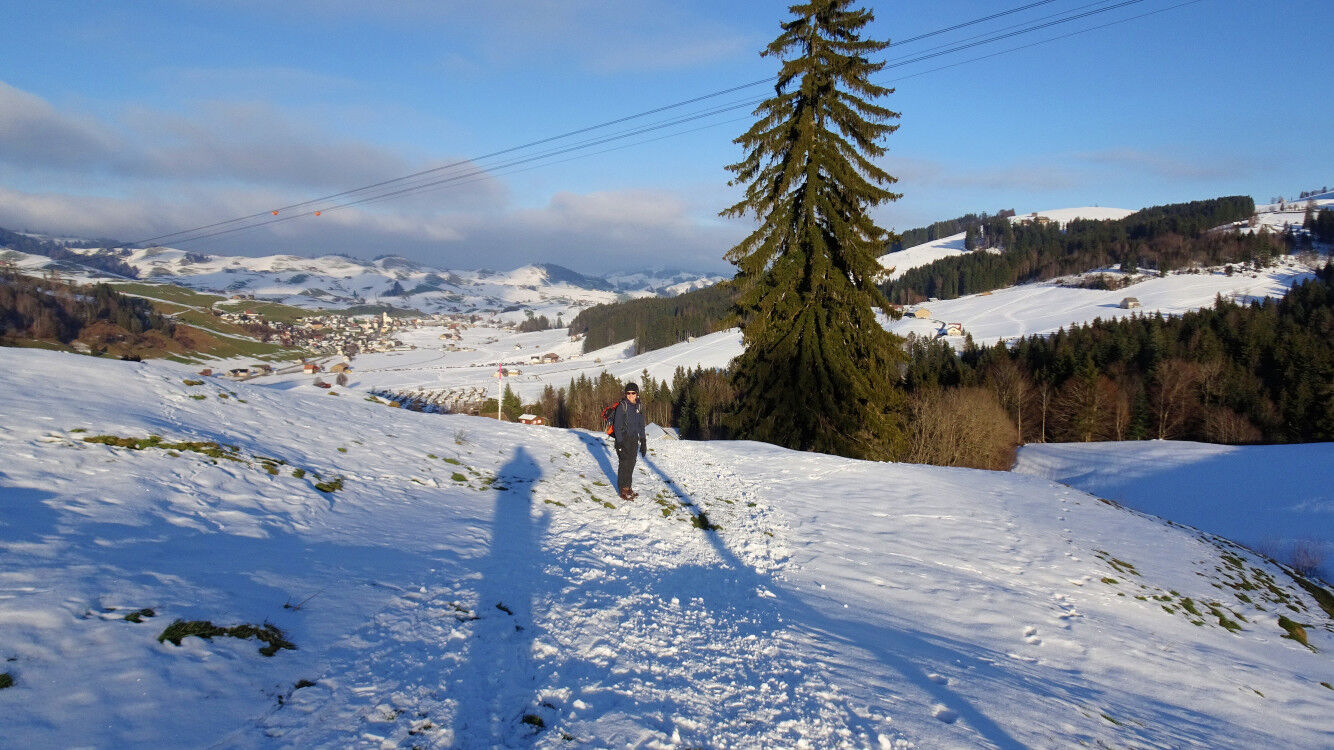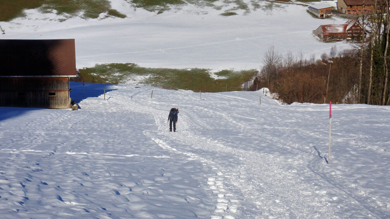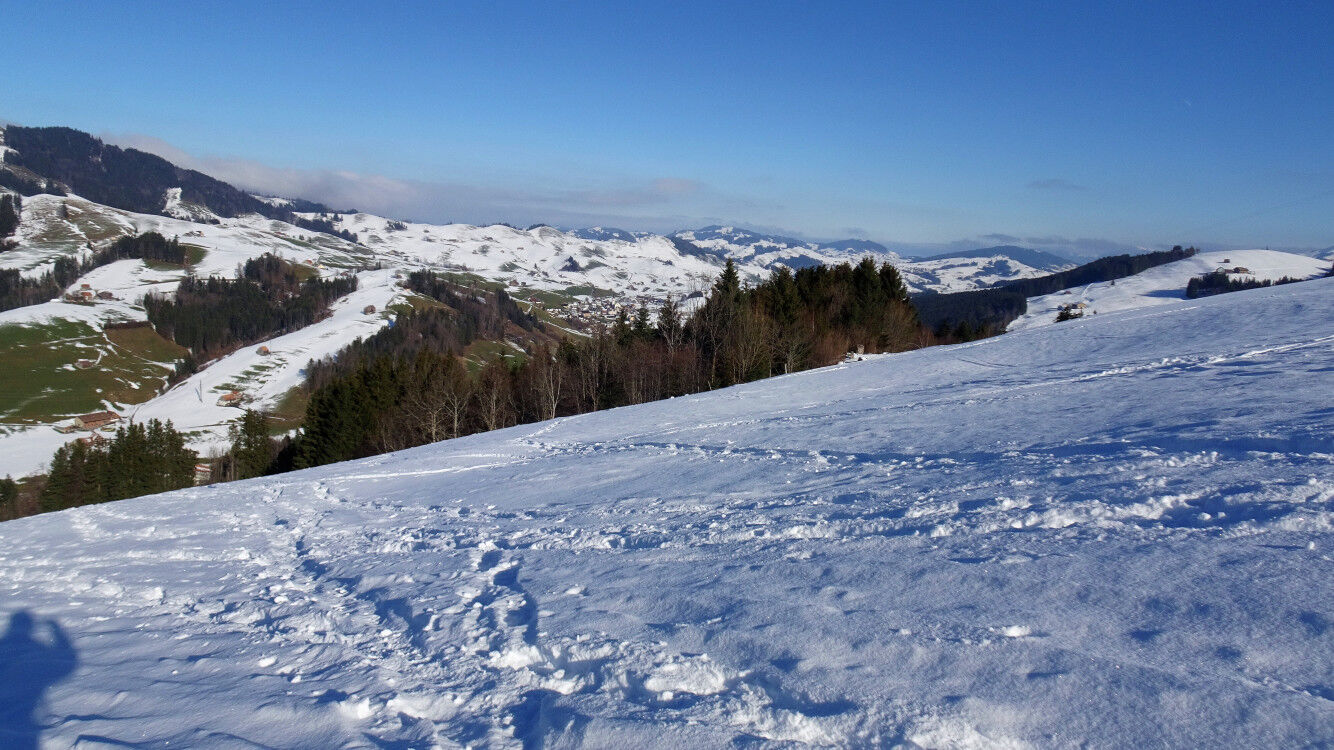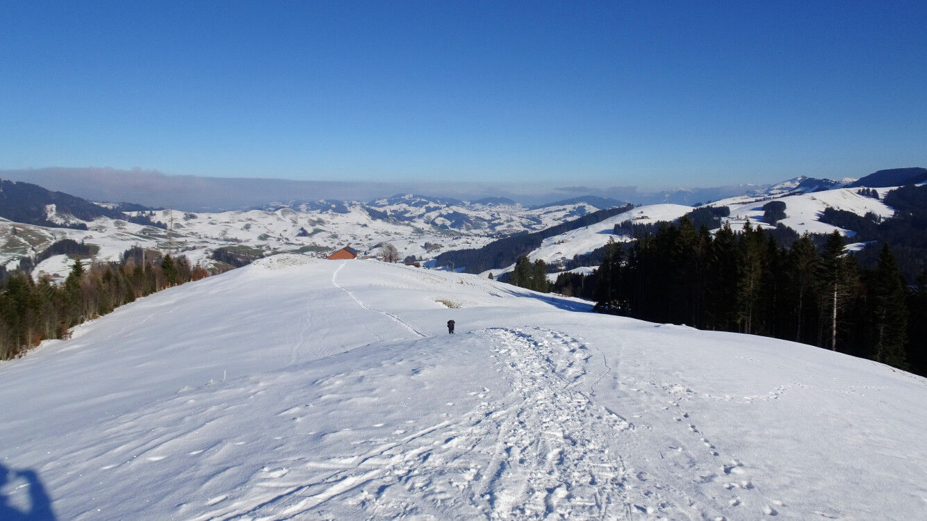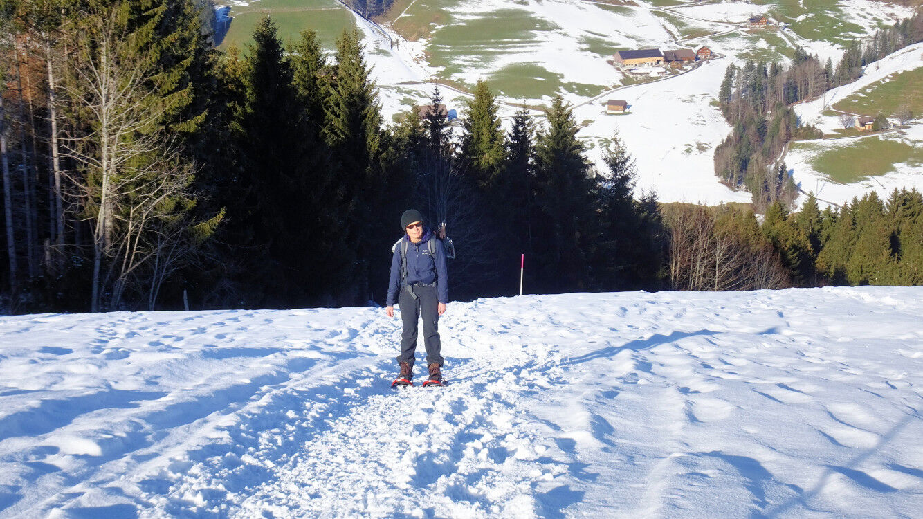 Schneeschuh-Runde im verschneiten Appenzellerland von Jakobsbad auf die Lauftegg.