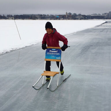 Luleå ist der Hammer! Die Stadt ist berühmt für ihre Isbanan – für die atemberaubende Eisspur auf natürlichem Meereis, die die Halbinsel der Stadt umgibt, sich von einer Seite zur anderen erstreckt und dann in den Bottnischen Archipel bis zur winzigen Insel Gråsjälören führt. Wir können es kaum erwarten, die Eisbahn an mehreren wunderschönen Tagen Ende Februar täglich beim Schlittschuhlaufen, Tretschlittenfahren oder Spazierengehen auf dem dicken Eis zu genießen.
