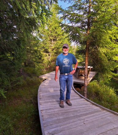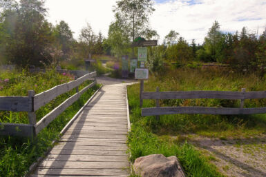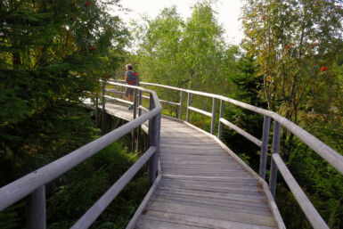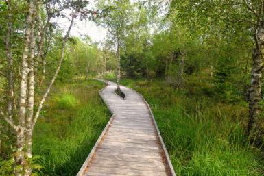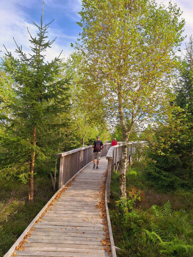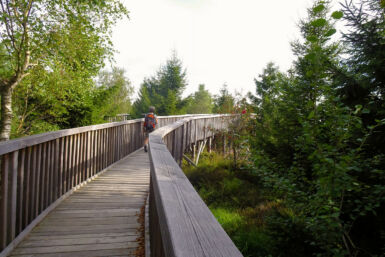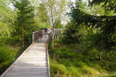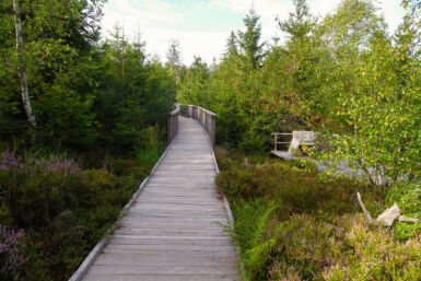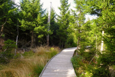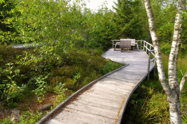 Ein barrierefreier Bohlenweg in Form eines Spechtes führt durch die verschiedenen Lebensräume des Nationalparks Schwarzwald.