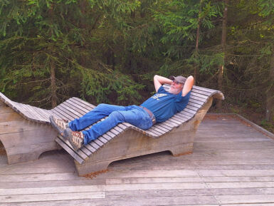 Der neue Spechtpfad aus Kastanien- und Eichenbohlen ist 1,2 Kilometer lang und beginnt direkt neben dem Lotharpfad an der Schwarzwaldhochstraße. Er ist in regelmäßigen Abständen mit Sitzgelegenheiten ausgestattet, Bänke und Himmelsliegen laden zum Verweilen ein. Kleine Spechte am Geländer zeigen an, wo ein Vertreter der totholzliebenden Vogelarten zu entdecken ist.