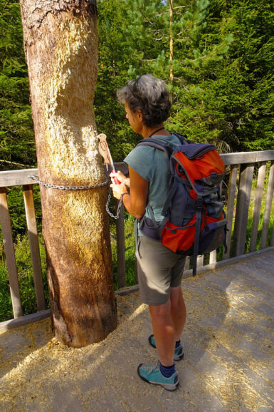 Über einen QR-Code entlang des Pfades kann man sich über die verschiedenen heimischen Spechtarten informieren. Auf der Website des Nationalparks findet man die kostenlose App zum digitalen Spiel mit vielen Mitmachstationen. Es wird dringend empfohlen, diese vorher herunterzuladen, da das Netz vor Ort nicht stabil ist. Leider fehlt (noch) eine normale Beschilderung und die QR-Codes führen leider hin und wieder zu Fehlermeldungen. Wissenswertes über die verschiedenen Spechtarten bleibt so verborgen.