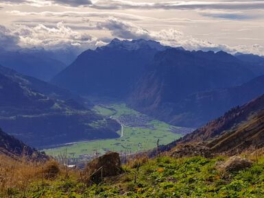 Nach einer ausgiebigen Gipfelrast führt uns der Weg auf der gleichen Route hinunter zurück nach Oberchäseren. In südwestlicher Richtung umrunden wir das Mattstockmassiv und passieren die Alp Hintermatt. Beim Blaggenboden geht der Alpweg in eine Forststrasse über, die uns zum Aussichtspunkt Durschlegi und zurück nach Amden führt.
