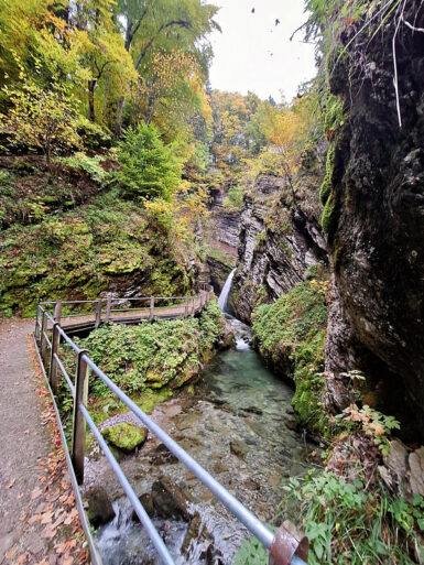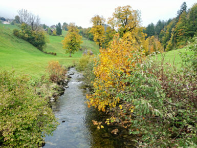 Toggenburg: Kurzer Spaziergang flussaufwärts entlang der Säntisthur bis zu den Thurwasserfällen.