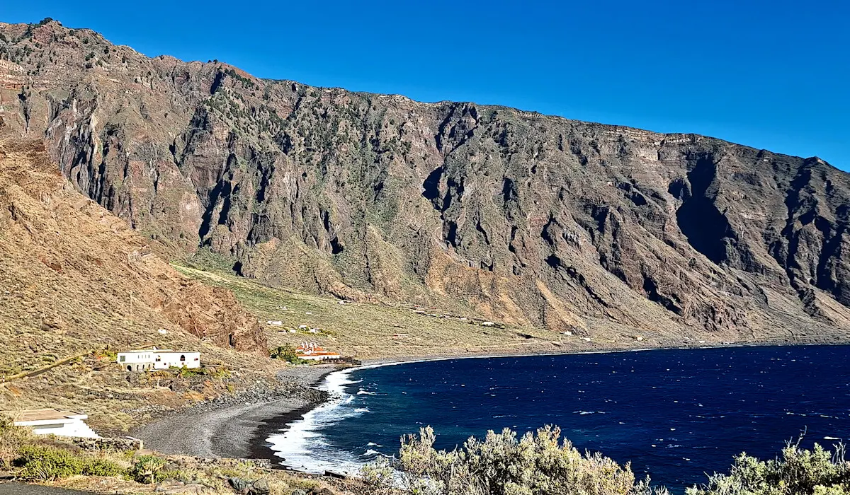 Diese Wanderung verbindet die Hauptstadt von El Hierro mit der wilden Lavaküste im Norden der Insel. Ausgangspunkt ist Valverde, von wo der Weg stetig bergab durch den Nordhang der Insel führt. Als Teil des gut ausgeschilderten GR-131 verläuft die Route bis zum Strand von Tamaduste. Es folgt eine leichte Wanderung entlang der Lavaküste zum Mirador Roque de las Gaviotas, dem Mövenfelsen. Vor der Küste ragt der markante Felsen mit sechseckigen Basaltklippen aus dem Meer, dazu kommen eindrucksvolle Felsbögen entlang der rauen Küstenlinie. Der Rückweg führt steil durch die Lavagrushänge des Vulkans La Cancela, dessen Flanke mit herrlichem Tiefblick auf Tamaduste gequert wird. Durch ein wildromantisches, von Flechten überzogenes Lavafeld und vorbei an Weinbergen schließt sich der Rundweg schließlich wieder in Valverde.