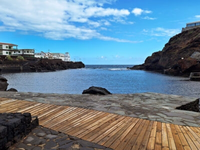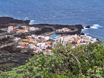Tamaduste ist ein malerischer Küstenort an der Nordostküste El Hierros. Er liegt unterhalb von Valverde, nur wenige Minuten vom Inselflughafen entfernt, eingebettet in die eindrucksvolle Kulisse einer mächtigen vulkanischen Steilwand. Die weißen Häuser des kleinen Ortes heben sich markant von der kargen Umgebung ab, die von schwarzem Lavageröll geprägt ist.