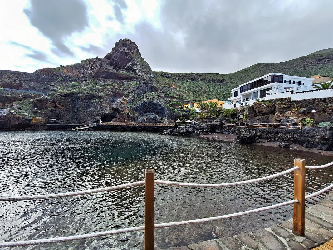 Tamaduste ist ein malerischer Küstenort an der Nordostküste El Hierros. Er liegt unterhalb von Valverde, nur wenige Minuten vom Inselflughafen entfernt, eingebettet in die eindrucksvolle Kulisse einer mächtigen vulkanischen Steilwand. Die weißen Häuser des kleinen Ortes heben sich markant von der kargen Umgebung ab, die von schwarzem Lavageröll geprägt ist.