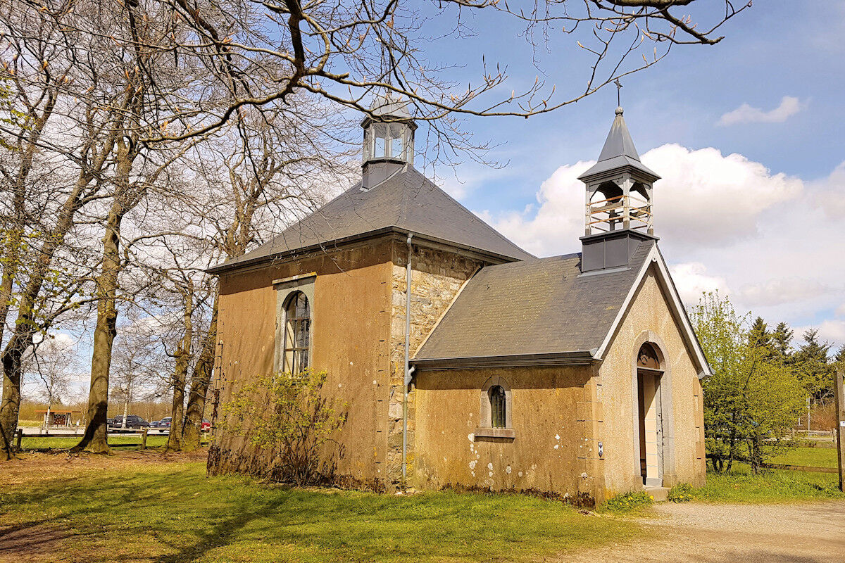 Schließlich erreichen wir den Gasthof Baraque-Michel mit der Kapelle Fischbach. Der anschließende Rückweg führt am Mont Rigi vorbei durch das Poleur-Venn, wo man noch heute die Spuren menschlicher Aktivitäten von vor hundert Jahren erkennen kann.