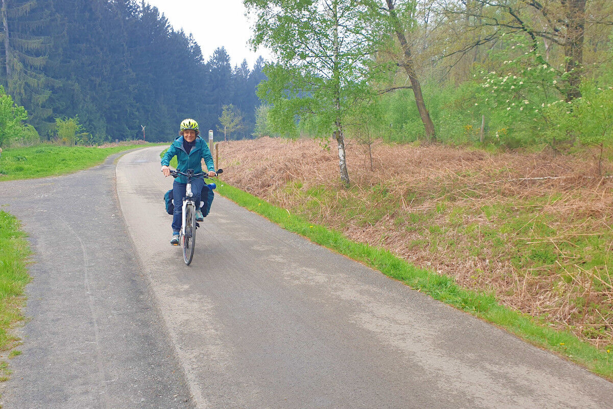 Auf dem Vennbahn-Radweg, einem der längsten Bahntrassen-Radwege Europas, von Belgien nach Deutschland.