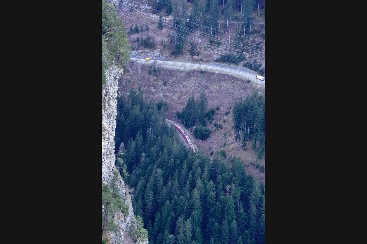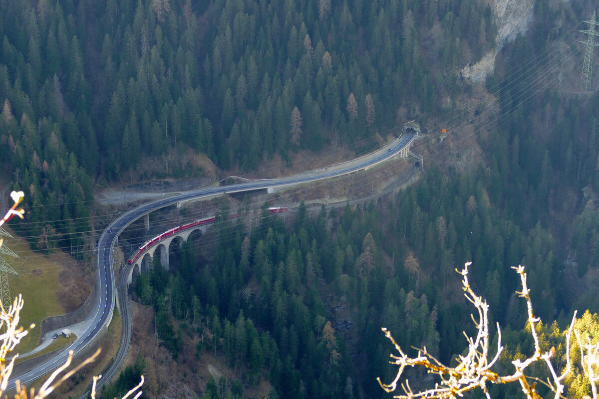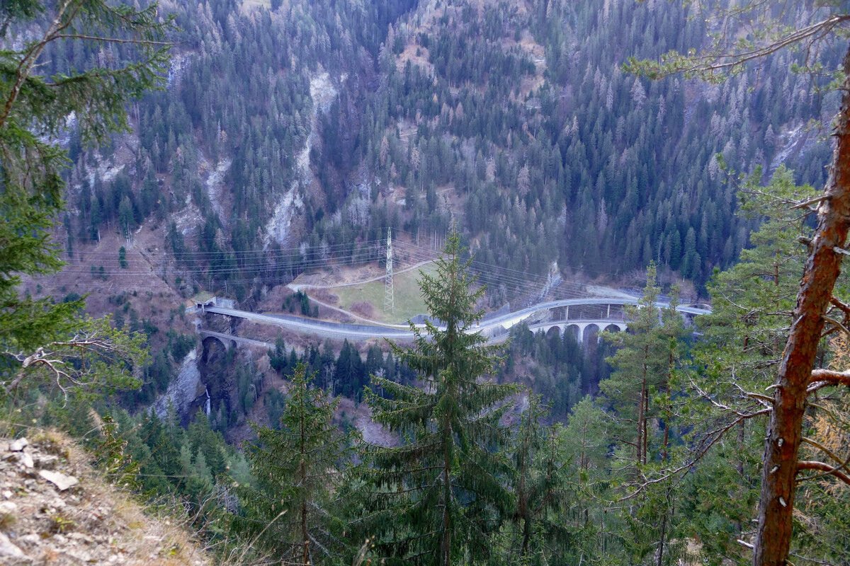 Zu meiner Schyntour breche ich am letzten November-Mittwoch auf. Der Bodensee und das Rheintal liegen im kalten grauen Nebel, aber ab Chur scheint die wärmende Sonne von einem strahlend blauen Himmel. Beim Soliser Viadukt muß ein kurzer Fotostopp sein.
