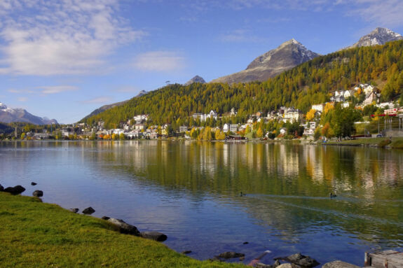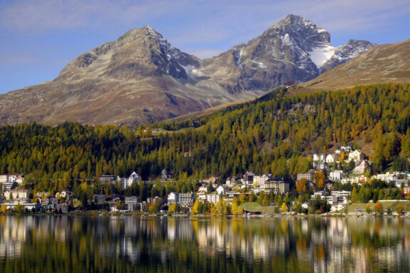 Wir starten unsere Wanderung am RhB-Bahnhof von St. Moritz, der leicht erhöht unmittelbar am Ufer des Lej da San Murezzan liegt. Von hier aus gleitet unser Blick über den See, auf den mondänen Weltkurort mit den berühmten Hotels. Über dem Ort erhebt sich das Skigebiet am Piz Nair. Wir überqueren den Inn und wandern am Nordwestufer des Sees entlang und weiter zum kleineren Lej da Staz.