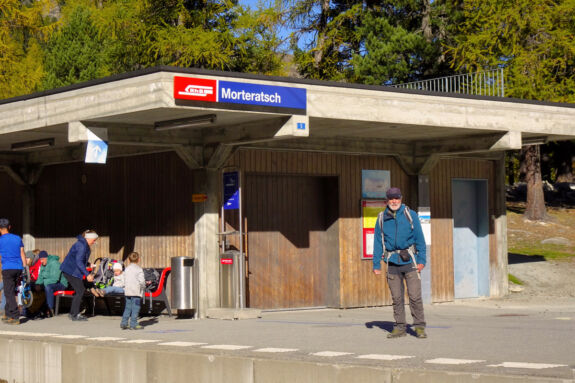 Nach der wohlverdienten Rast wandern wir gemütlich auf demselben Weg hinab zum RhB-Bahnhof von Morteratsch und zurück zum Campingplatz.