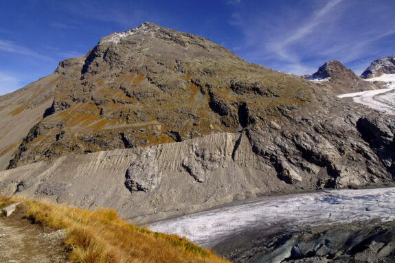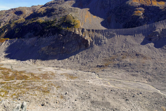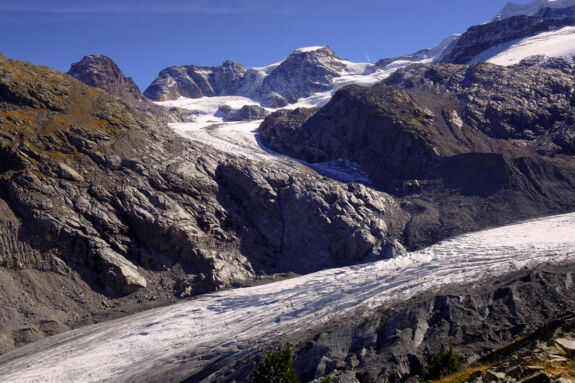 Via Albula/Bernina – Etappe 9a: Auf dem Gletscher-Panorama-Pfad von Morteratsch entlang der Seitenmoräne des Vadret da Morteratsch zur Chamanna da Boval CAS (2495 m).