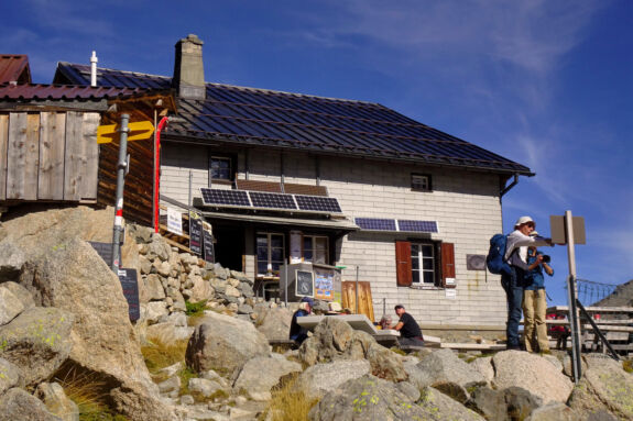 Die Kulisse, die sich uns von der Terrasse der Hütte öffnet, ist ein atemberaubendes Schauspiel auf das grandiose Bernina-Massiv. Lange sitzen wir hier und schauen.