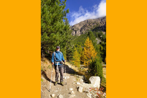 Bei unserer Fahrt vom Bodensee nach Morteratsch über den Julierpass und bei der Ankunft auf dem Campingplatz regnet es in Strömen, ein oder zwei Tage zuvor schneite es sogar und der ganze Campingplatz war weis. In der Nacht hört der Regen auf, am Morgen wabert der Nebel zwischen den bunten Lärchenwäldern, darüber erheben sich schneebedeckte Berggipfel und ein tiefblauer, wolkenloser Himmel ist zu sehen. Das wird ein toller Tag für unsere Wanderung hoch zum Bernina-Pass, zum Ospizio Bernina.