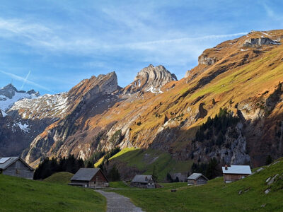 Hier treffe ich Dieter. Leider ist es schon spät am Nachmittag, so bleibt keine Zeit mehr für den Schäfler, sodass wir ihn nur aus der Ferne betrachten. Nach einer gemütlichen Zeit auf der Ebenalp fahren wir dann mit der Seilbahn zurück nach Wasserauen. Dennoch: es war ein Herbst-Wandertag, der glücklich macht.