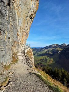 der Aufstieg vom Seealpsee zur Ebenalp verläuft sehr steil in der Felswand