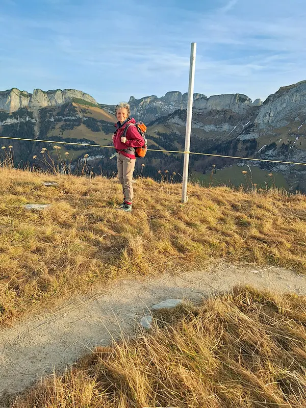 Hier treffe ich Dieter. Leider ist es schon spät am Nachmittag, so bleibt keine Zeit mehr für den Schäfler, sodass wir ihn nur aus der Ferne betrachten. Nach einer gemütlichen Zeit auf der Ebenalp fahren wir dann mit der Seilbahn zurück nach Wasserauen. Dennoch: es war ein Herbst-Wandertag, der glücklich macht.
