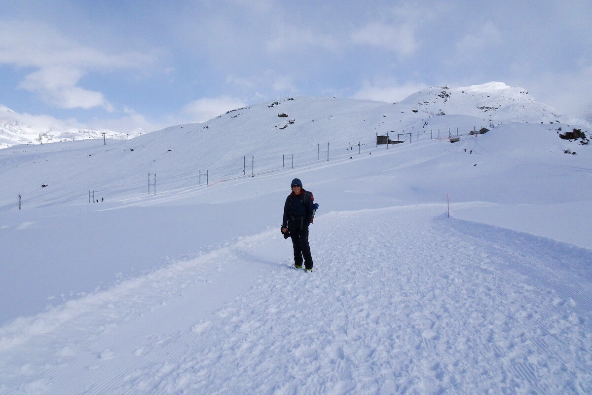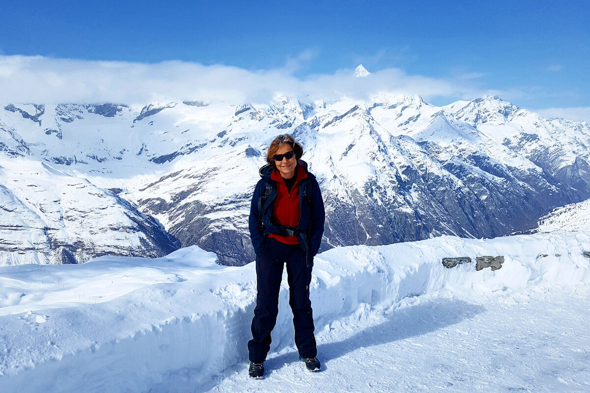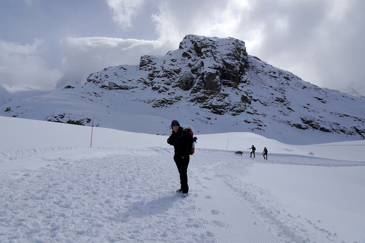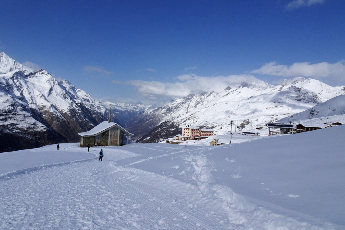 Eine Winterwanderung auf dem Gornergrat im Angesicht des Matterhorns – das ist unser Wintermärchen. Der präparierte Winterwanderweg beginnt auf dem Rotenboden, der vorletzten Station der Gornergrat-Zahnradbahn. Auch wenn sich das Matterhorn heute nicht wirklich zeigen mag, die Aussicht rundum auf die verschneiten Viertausender ist unbeschreiblich schön. In lockeren Kehren geht es hinunter zum Riffelberg und der dortigen Station der Gornergratbahn.