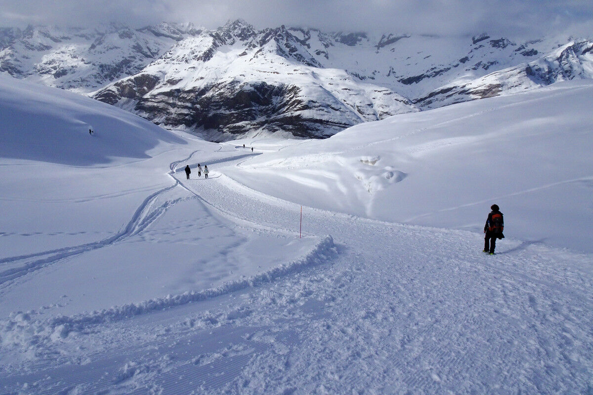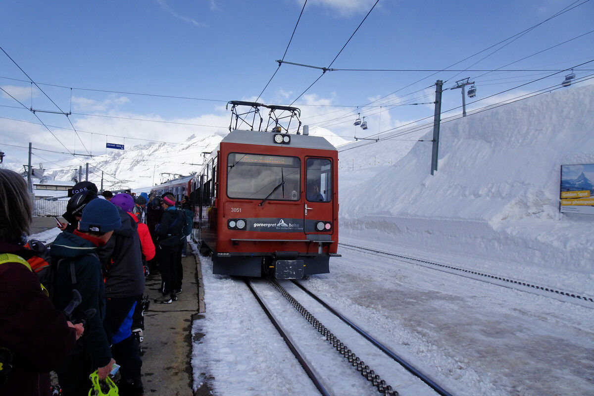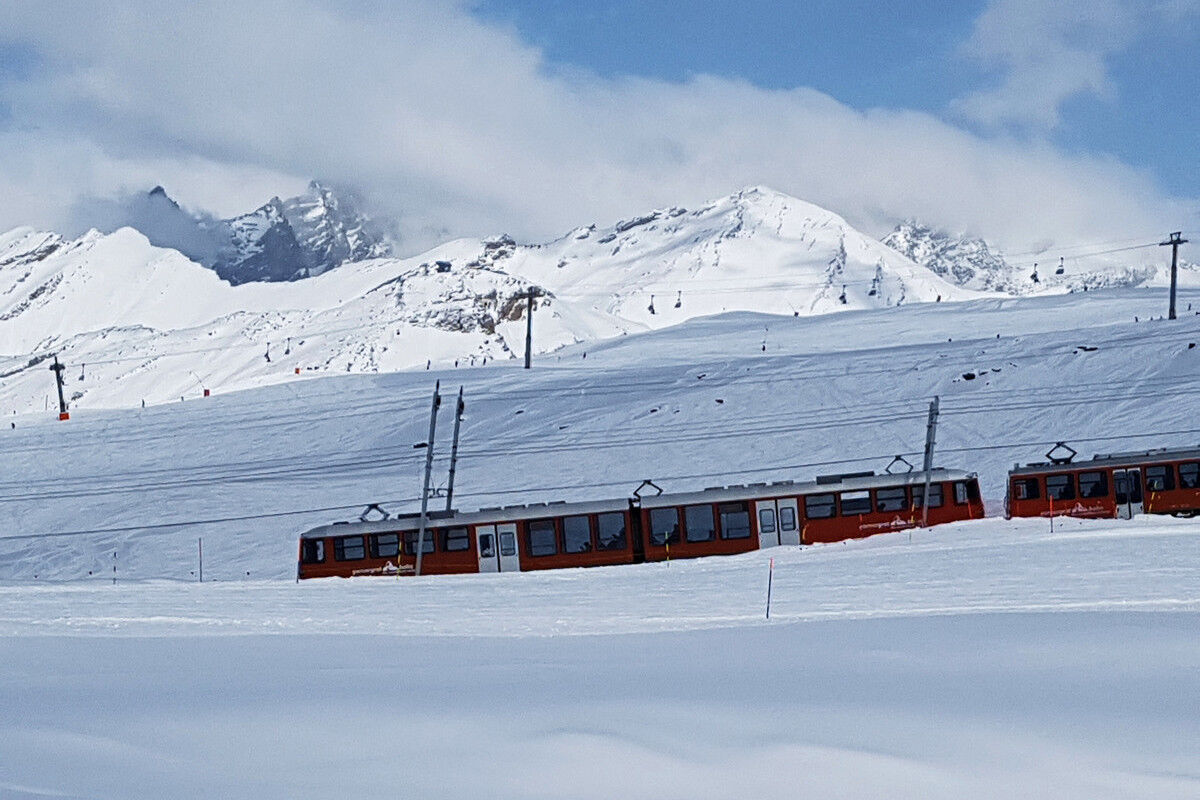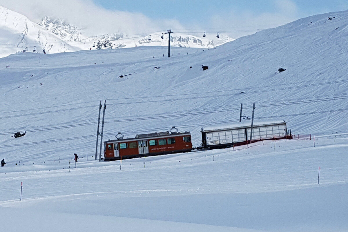 Vor Beginn unserer Winterwanderung fahren wir mit der Zahnradbahn ganz hinauf zum Gornergrat. Oben angekommen erwartet uns ein atemberaubendes Berg- und Gletscherpanorama auf 29 Viertausender. Nach ausgiebigem Staunen fahren wir eine Station zurück nach Rotenboden. Hier führt ein präparierter, leicht begehbarer Winterwanderweg abseits des Trubels und der Skifahrer hinunter nach Riffelberg.